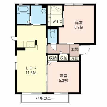 | 間取り | 2LDK(LDK11.3帖 洋室6.9帖 洋室5.3帖) | 主要採光面 | 南西 |
